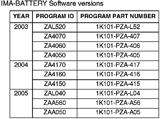 ^ 2005 models from VIN JHMES9...5S016050 thru JHMES9...5S18604: Update the IMA battery software with the HDS (see REPAIR PROCEDURE B, includes affected VINs)