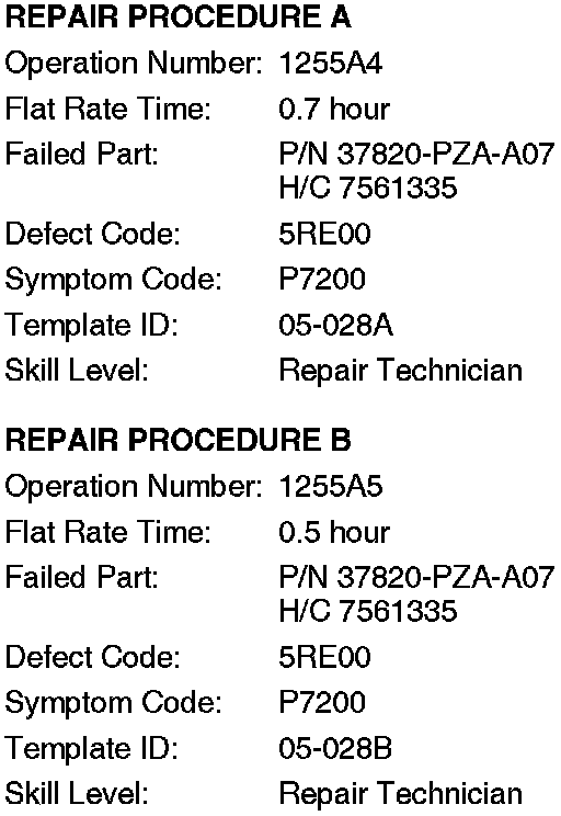 Update the PGM-FI, and the IMA battery software with the HDS (see REPAIR PROCEDURE A, includes affected VINs)