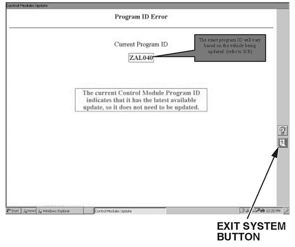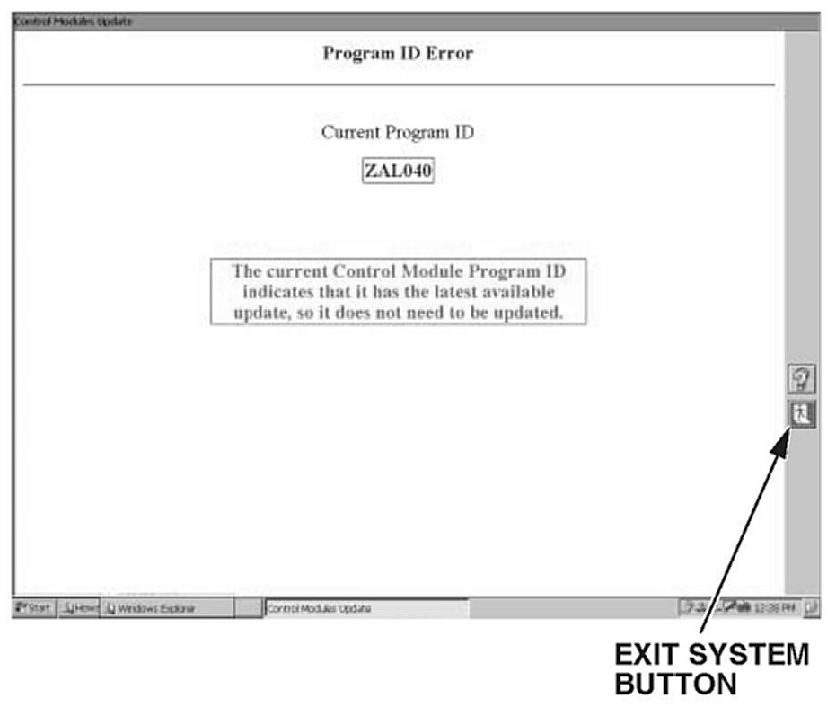 ^ If the ECM has already been updated with the most recent software available on your HDS, you will see this screen. Select the Exit System button. Then go to step 12.