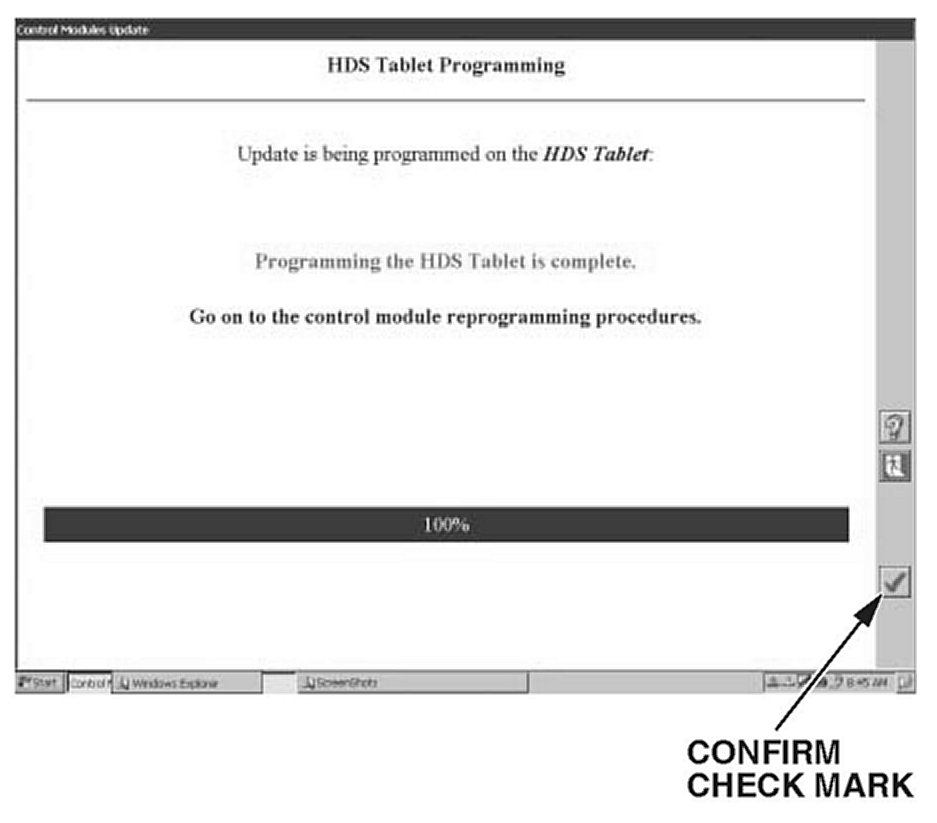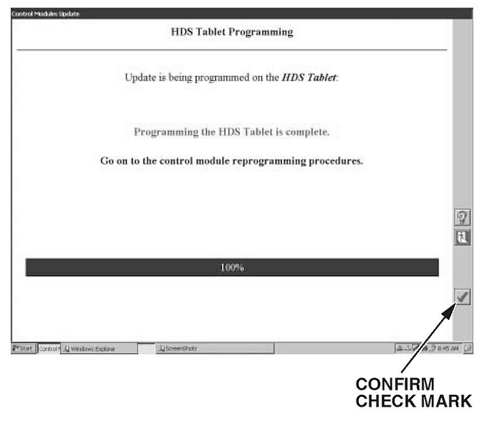 8. In the HDS Tablet Programming screen, select the Confirm check mark icon after the programming is completed.