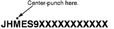 14. Center-punch a completion mark above the third character of the engine compartment VIN.