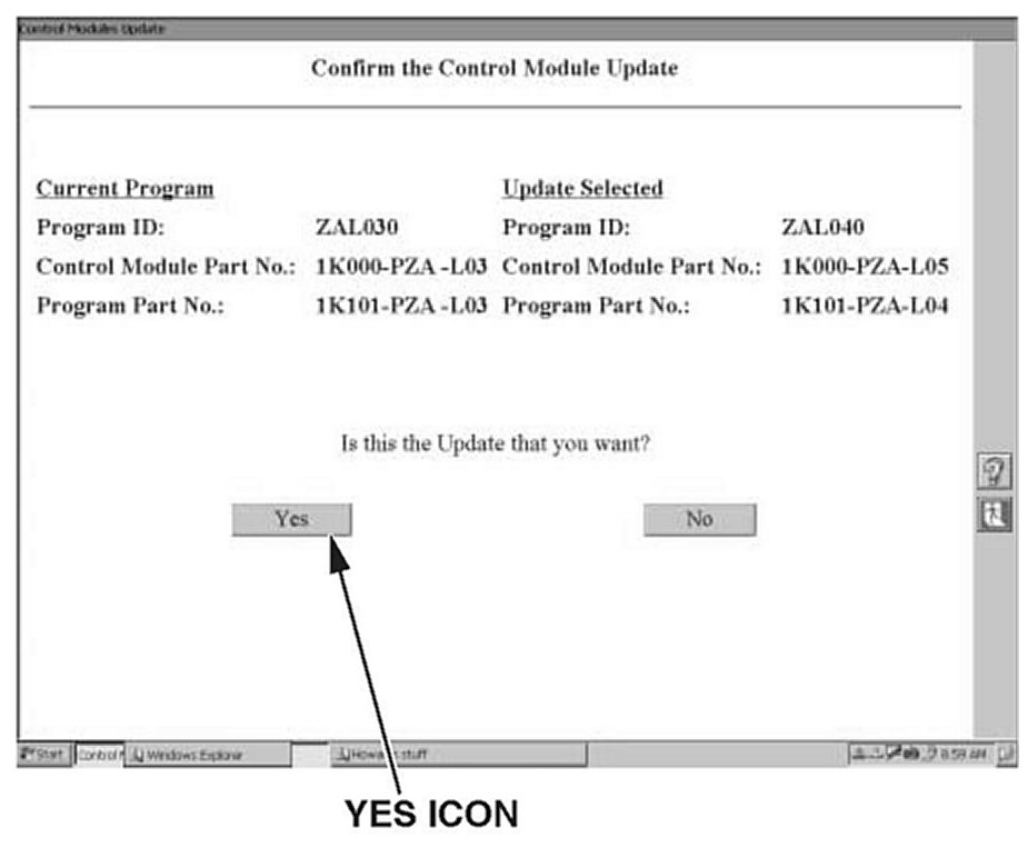 7. In the Confirm the Control Module Update screen, select the YES icon.