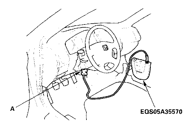 2. Connect the Honda Interface Module (HIM) to the data link connector (DLC) (A) located under the driver's side of dashboard.