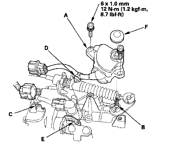 5. Disconnect transmission range switch connector, and remove the harness clamp (A) from the clamp bracket (B).