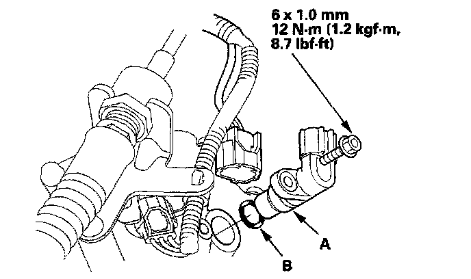 4. Install the new CVT speed sensor with the new O-ring (B).