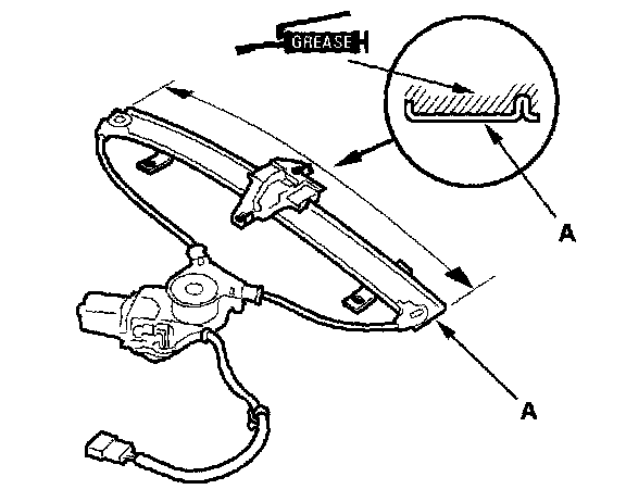 5. Apply multipurpose grease to all the sliding surfaces of the regulator (A) where shown.