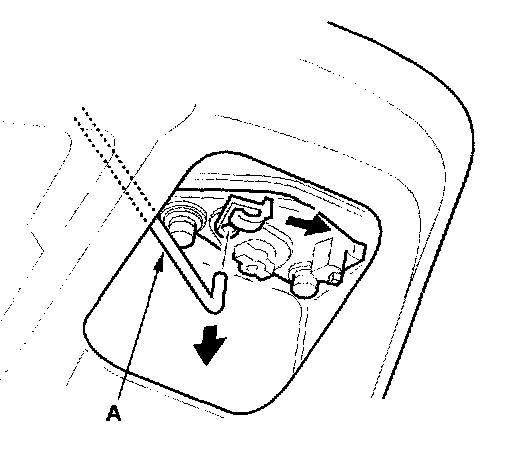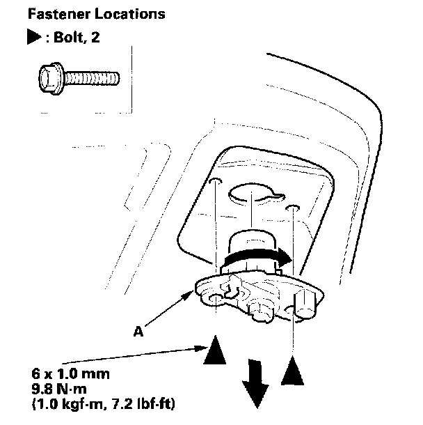 2. Remove the bolts securing the lock cylinder (A). Then turn the trunk lid lock cylinder 45 °, and remove it.