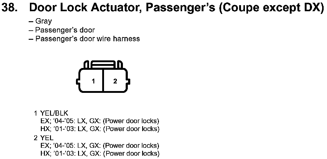 38. Door Lock Actuator, Passenger's (Coupe Except DX):