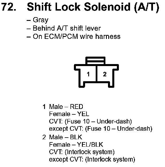 72. Shift Lock Solenoid (A/T):