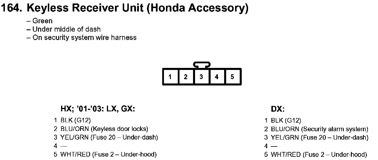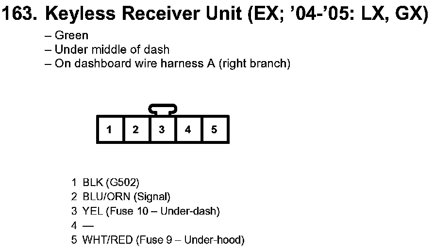 163. Keyless Receiver Unit (EX; '04-'05: LX, GX):