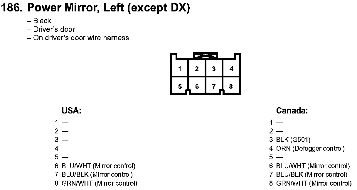 186. Power Mirror, Left (except DX):