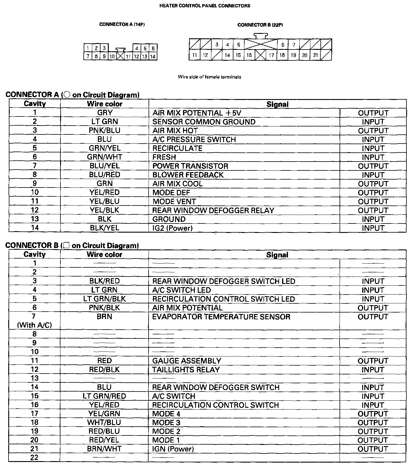 Heater Control Panel Inputs and Outputs: