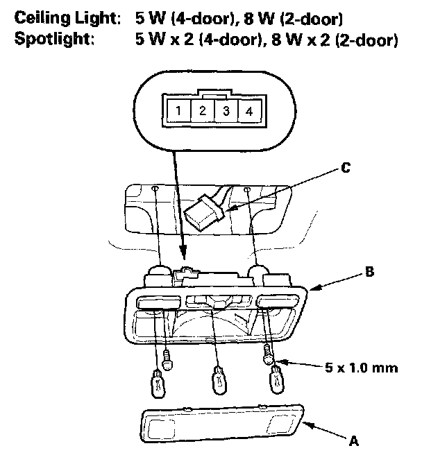 Ceiling Light/Spotlights Test/Replacement - With Moonroof1. Turn the ceiling light/spotlights switches OFF.