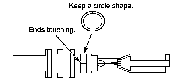 3. Strip the insulation off the end of the wire so the wire fits in the new terminal as shown. (If the wire has a wire seal, replace it with a new one from the kit.)