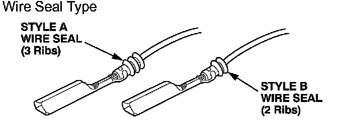 Select the proper size pigtail terminal by matching the replacement terminal part number and the wire size being repaired to the corresponding pigtail terminal part number. Then use the color (size) splice connector listed. In some instances you may also have to match the wire seal style to select the proper pigtail terminal. Pigtail terminals are available through your parts department, in quantities of 10, using normal parts ordering procedures.