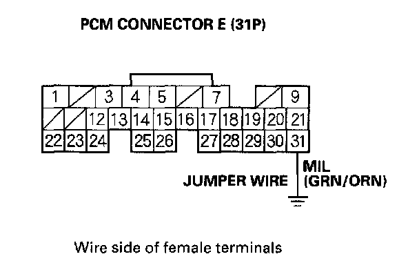 12. Connect PCM connector terminal E31 to body ground with a jumper wire.