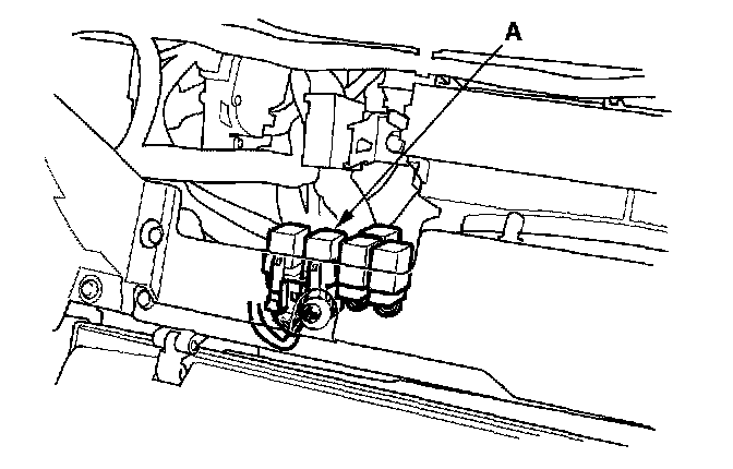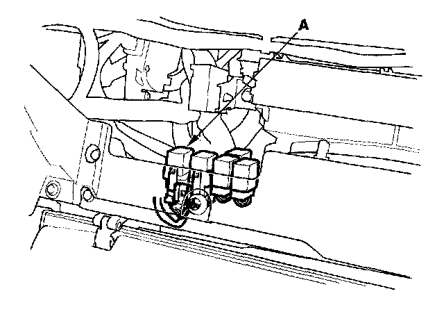 26. Remove the glove box, then remove PGM-FI main relay 2 (A).