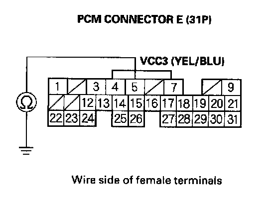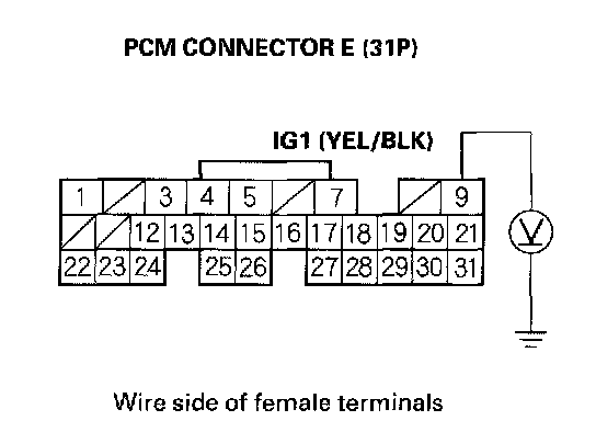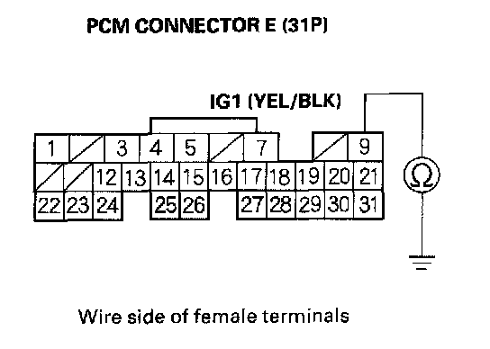 27. Check for continuity between PCM connector terminal E9 and body ground.