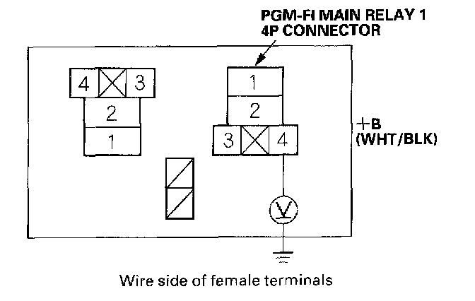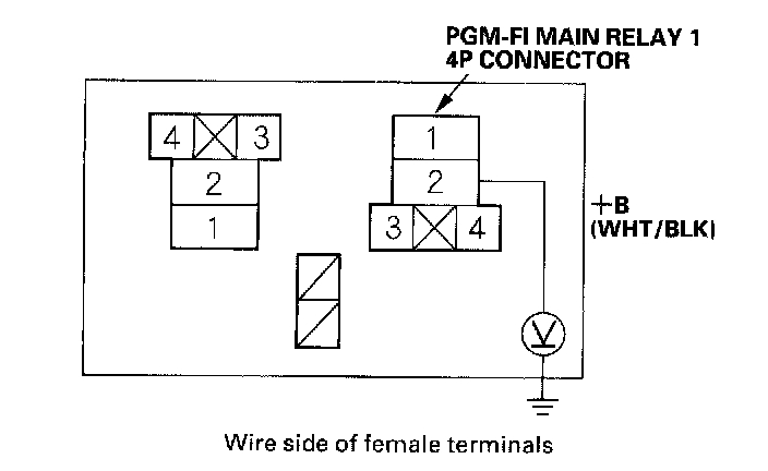 21. Check for continuity between PGM-FI main relay 1 4P connector terminal No.1 and body ground.