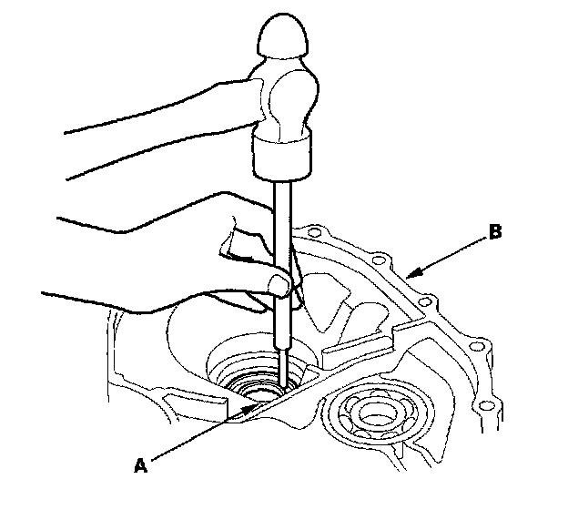 2. Remove the oil seal (A) from the flywheel housing (B).