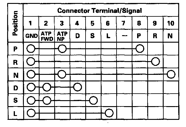 Transmission Range Switch Test1. Disconnect the transmission range switch connector.