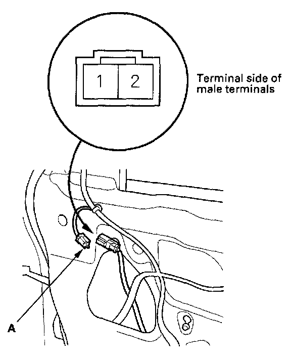 2. Disconnect the 2P connector (A) from the passenger's power window motor.