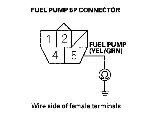 31. Check for continuity between fuel pump 5P connector terminal No.5 and body ground.