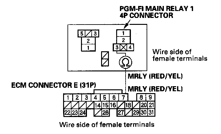 NO - Repair open in the wire between PGM-FI main relay 1 and the ECM/PCM (E7).