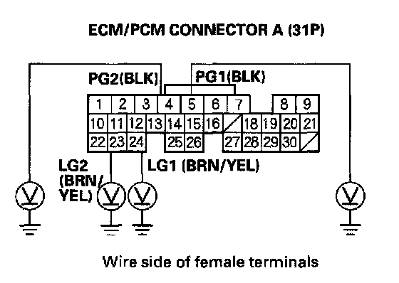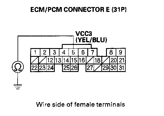 12. Connect ECM/PCM connector terminal E31 to body ground with a jumper wire.