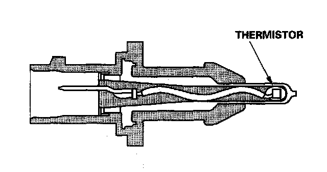 The ECT sensor is a temperature dependent resistor (thermistor). The resistance of the thermistor decreases as the engine coolant temperature increases.