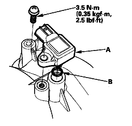 Install the sensor in the reverse order of removal with a new O-ring (B).