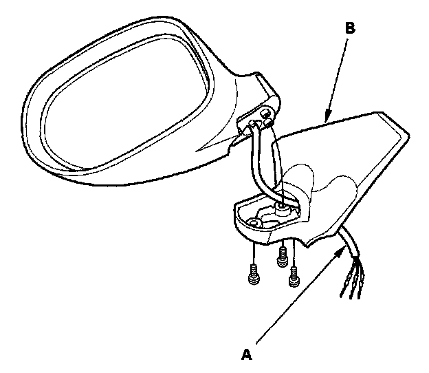 4. Remove the three screws, and separate the mirror housing (A) from the bracket (B).