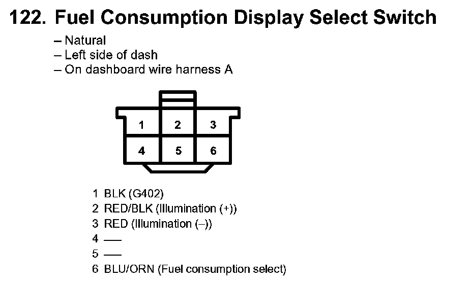 122. Fuel Consumption Display Select Switch: