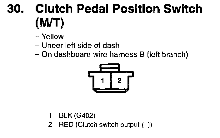 30. Clutch Pedal Position Switch (M/T):