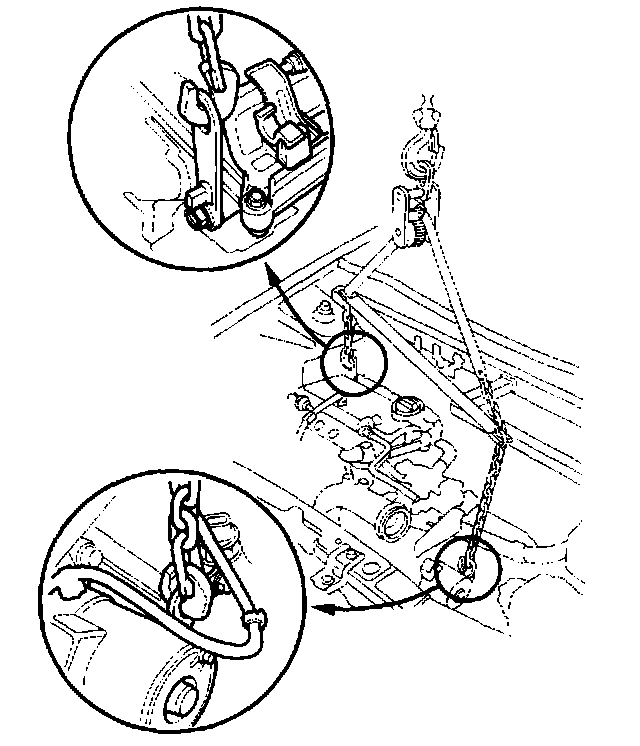 40. Attach the chain hoist to the engine as shown.