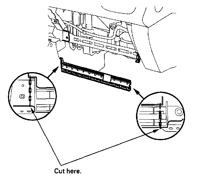 2. Cut the plastic cross brace in the glove box opening with diagonal cutters in the area shown, and discard it.