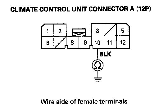 7. Check for continuity between the No. 10 terminal of climate control unit connector A (12P) and body ground.