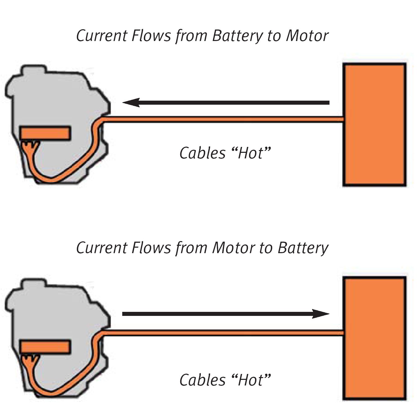 1. The ignition switch is on, the engine is running, and the vehicle is accelerating. In this case, the high-voltage battery module is sending current to the motor.