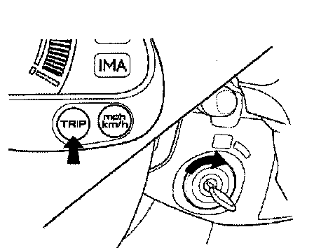 2. Press and hold the trip button in the instrument panel, then turn the ignition switch ON (II).