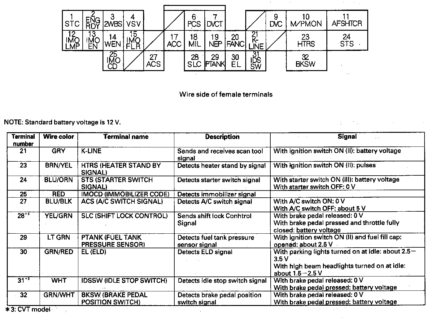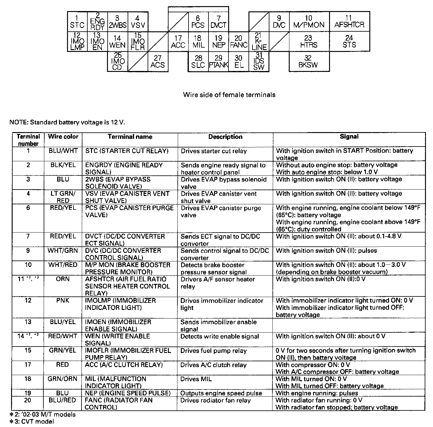 ECM/PCM Inputs And Outputs At Connector A (32P) Part 1: