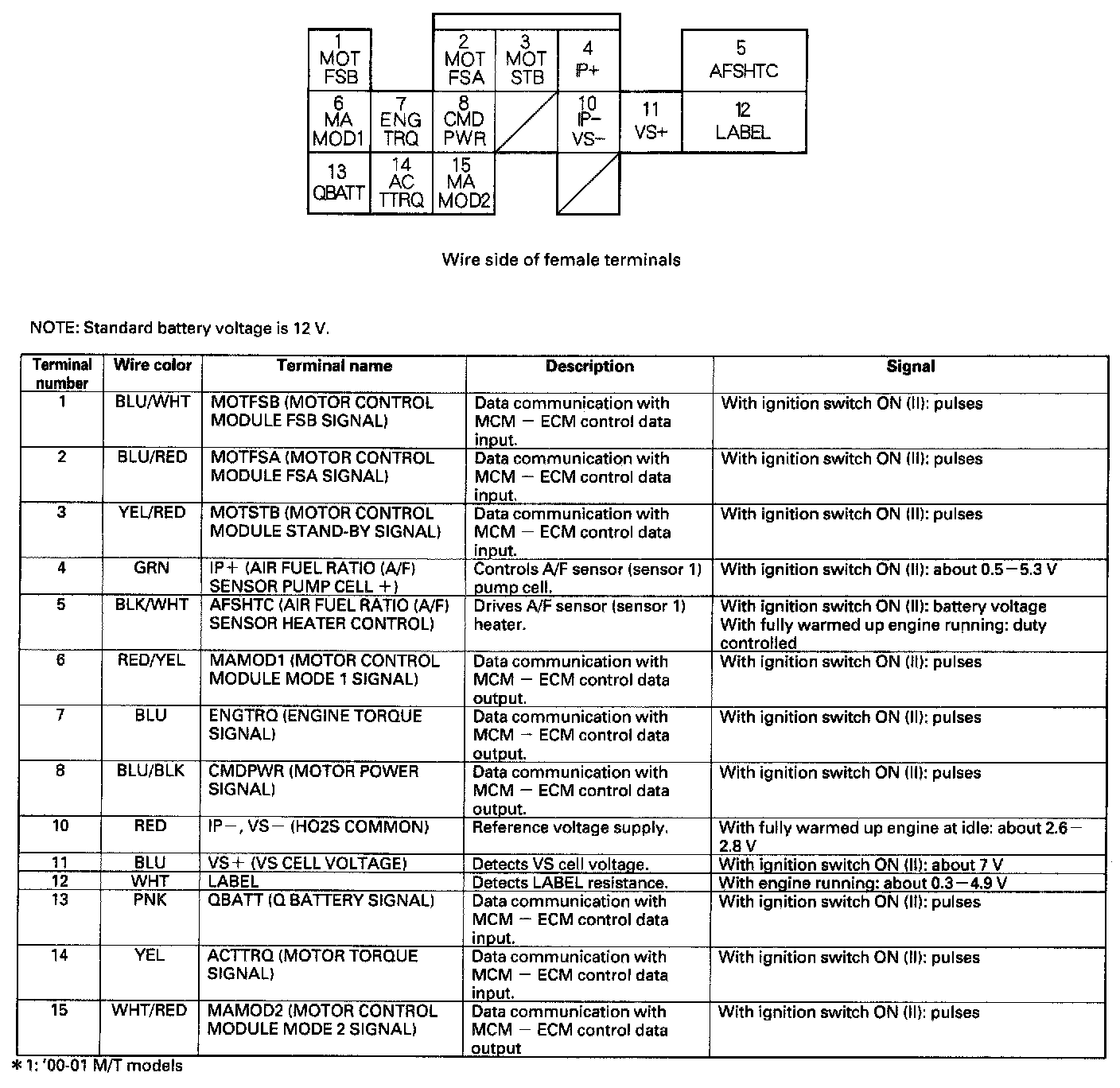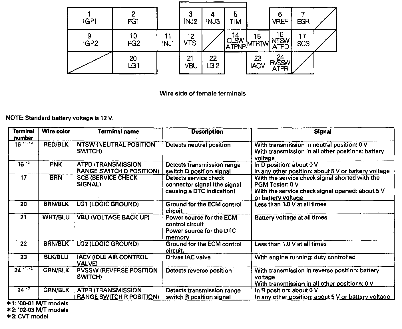 ECM/PCM Inputs And Outputs At Connector D (16P) Part 1: