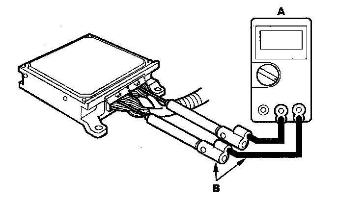 3. Connect the Honda PGM Tester (A), and go to the PGM-FI Data List; then go to step 9, if you don't have a PGM Tester, go to step 4.