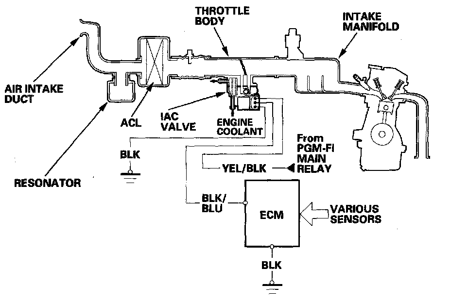 - When the engine coolant temperature is low, the IAC valve is opened to obtain the proper fast idle speed. The amount of bypassed air is controlled in relation to engine coolant temperature to maintain the proper idle speed.
