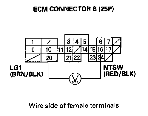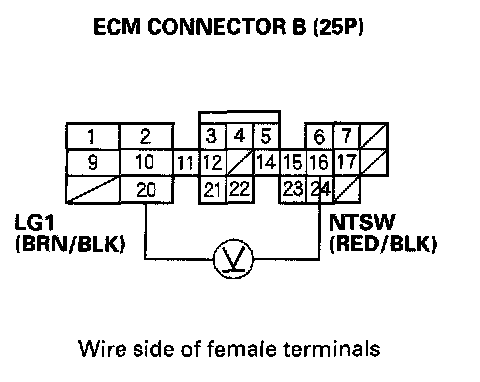 5. Measure voltage between ECM connector terminals B16 and B20.