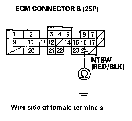 YES - Repair short in the wire between the ECM (B16) and the neutral position switch.