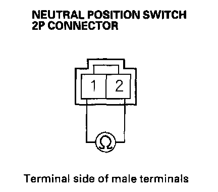 15. Check for continuity between neutral position switch 2P connector terminals No.1 and No.2 with the transmission in 1st gear.