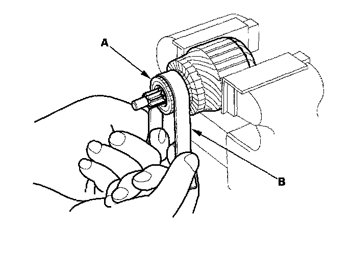 13. Install the brush into the brush holder, and set the armature (A) in the brush holder (B).