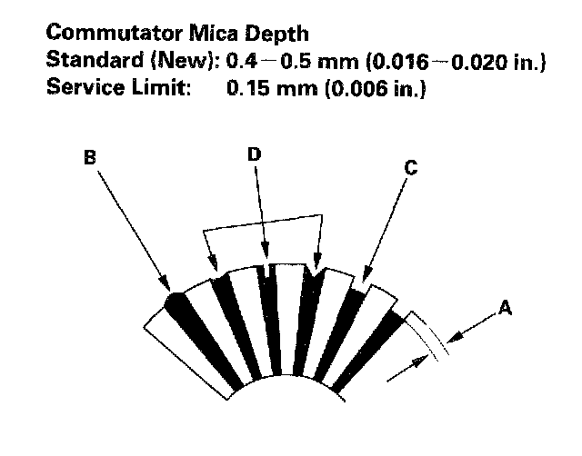 - If the commutator runout is within the service limit, check the commutator for carbon dust or brass chips between the segments.