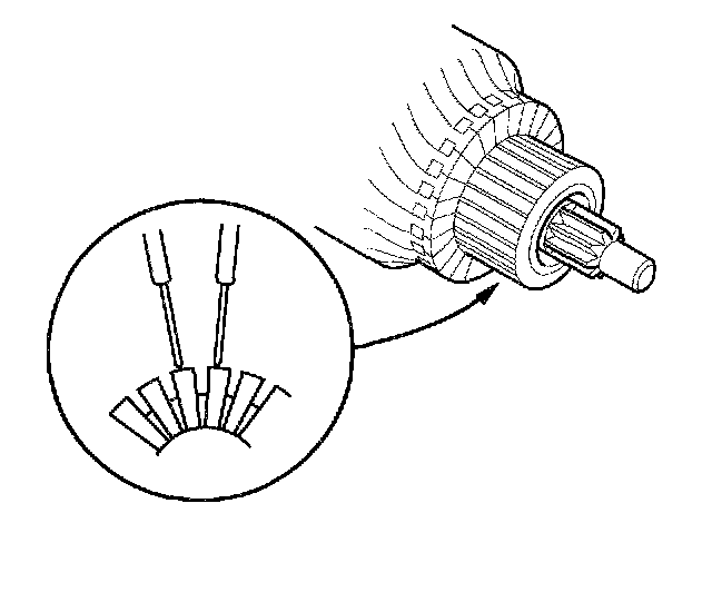 8. Check for continuity between the segments of the commutator. If an open circuit exists between any segments, replace the armature.