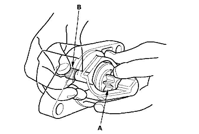 17. Holding the drive gear (A), turn the gear shaft (B) clockwise. Check that the drive gear comes out to the other end. If the drive gear does not move smoothly, replace the gear cover assembly.